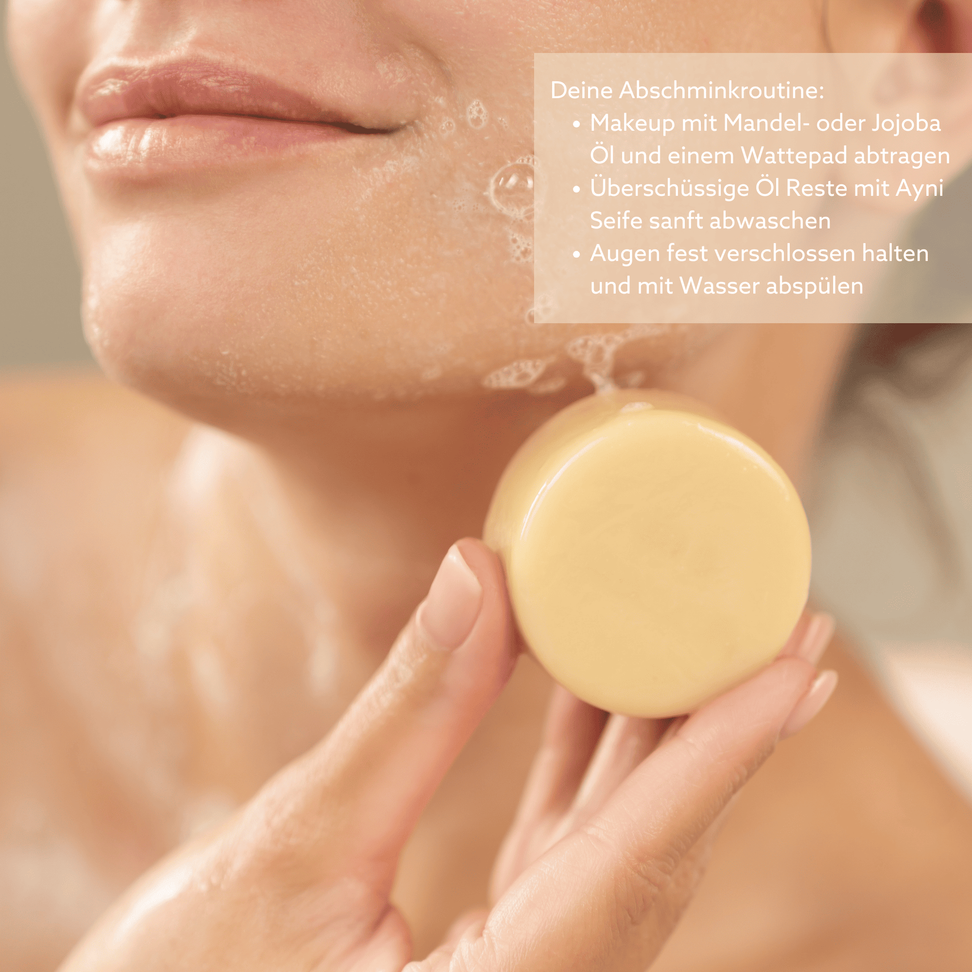 Ich nutze die Ayni Seife jetzt schon eine ganze Weile und bin sehr zufrieden! Mein Hautbild hat sich verbessert und meine Haut fühlt sich nach der Anwendung allgemein super weich und angenehm an. Die Seife ist aus meiner Morgen- und Abendroutine nicht mehr wegzudenken :)