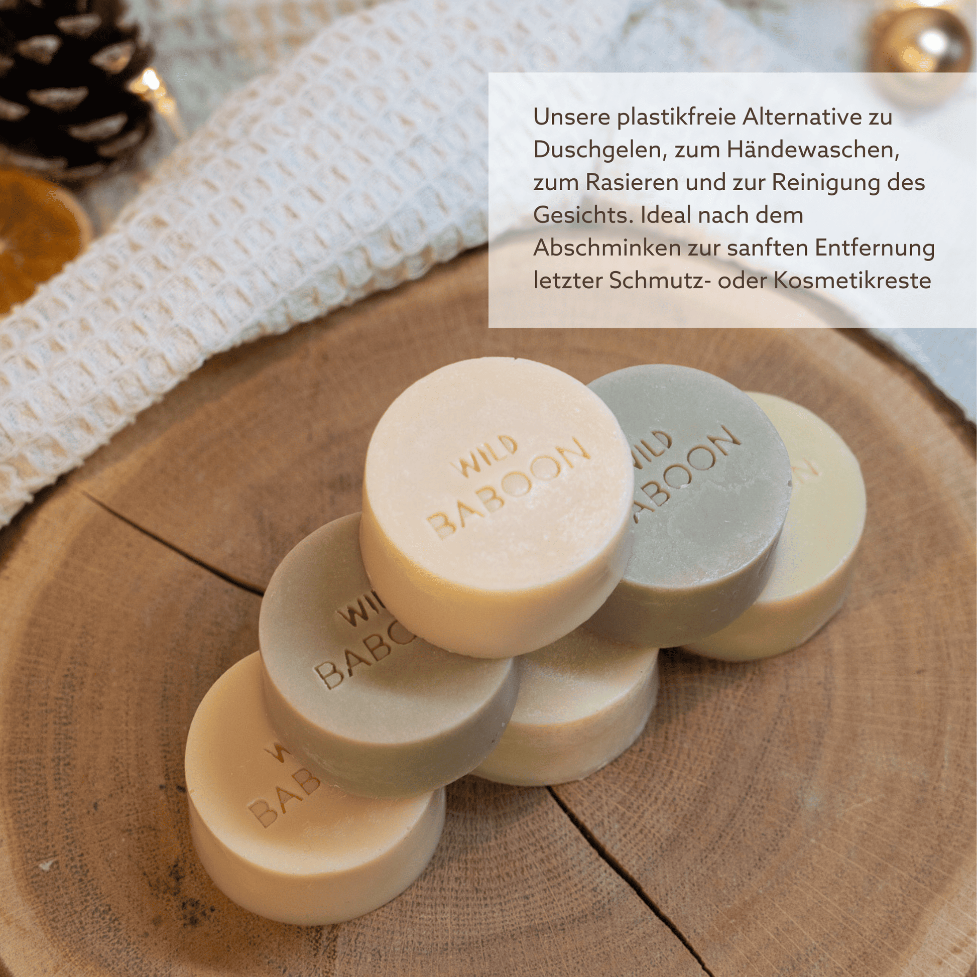 Die Naturseifen von Wild Baboon werden nicht auf Wasserbasis, sondern auf Aloe Vera Saftbasis hergestellt. Die Qualität im Vergleich zur normalen Naturseifen ist demnach deutlich höher. Es werden ausschließlich reine Bio Öle und Butter für die Seifen verwenden und liebevoll in Deutschland in einer Manufaktur von Hand hergestellt. Jede Seife wird einzeln gegossen und gestempelt. All unsere Öle und Butter sind mit dem höchsten Naturkosmetik-Standard, COSMOS, zertifiziert. Diese Seifen-Pralinen sind echter Luxus für unsere Haut.