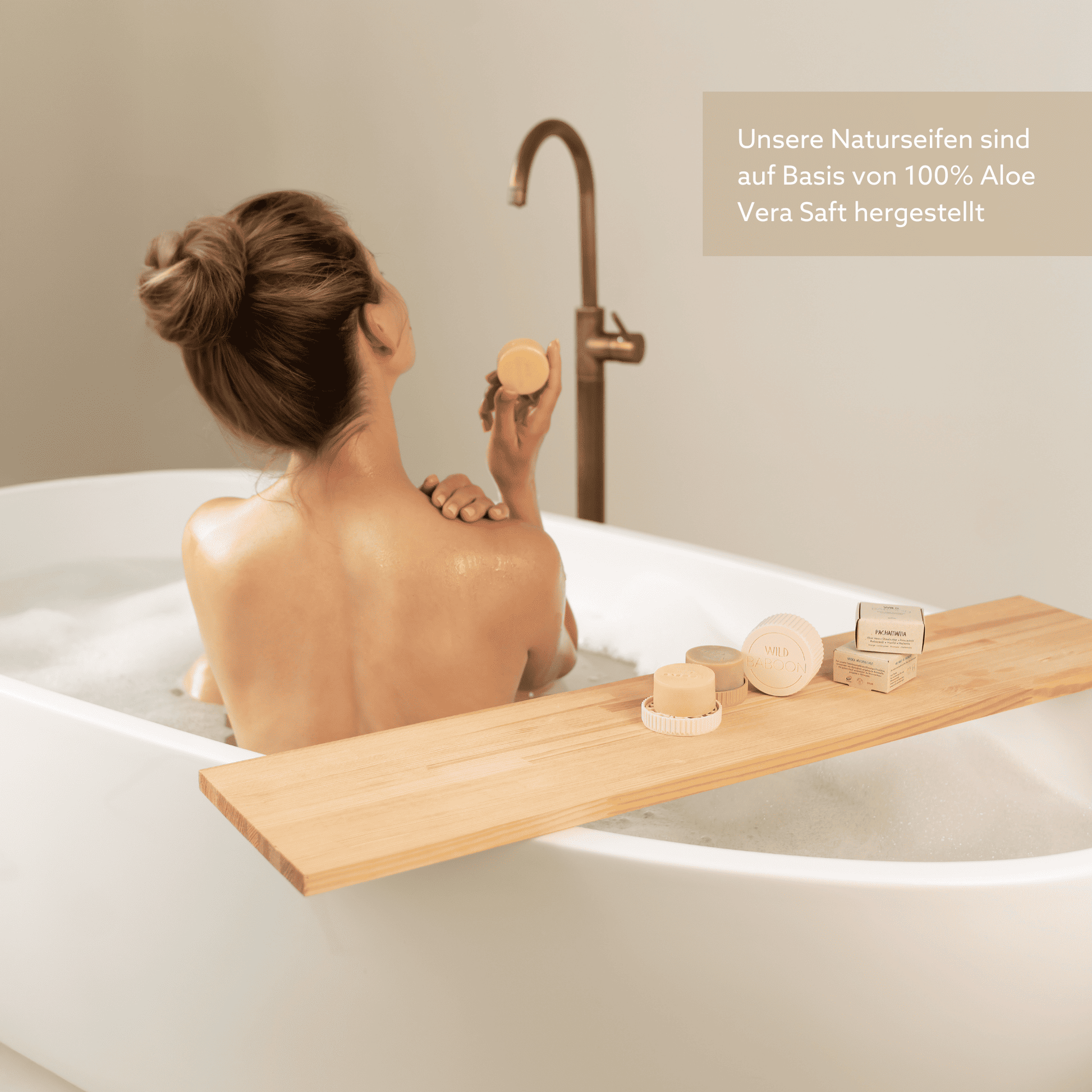 Ich bin begeistert von der Aloe Vera Seife. Reinigt sanft und gründlich die Haut ohne ein Spannungsgefühl zu hinterlassen. Auch Make up wird super entfernt. Habe die Seife jetzt auch meiner Tochter (Probleme mit leichter Neurodermitis) geschenkt und sie ist auch super zufrieden.