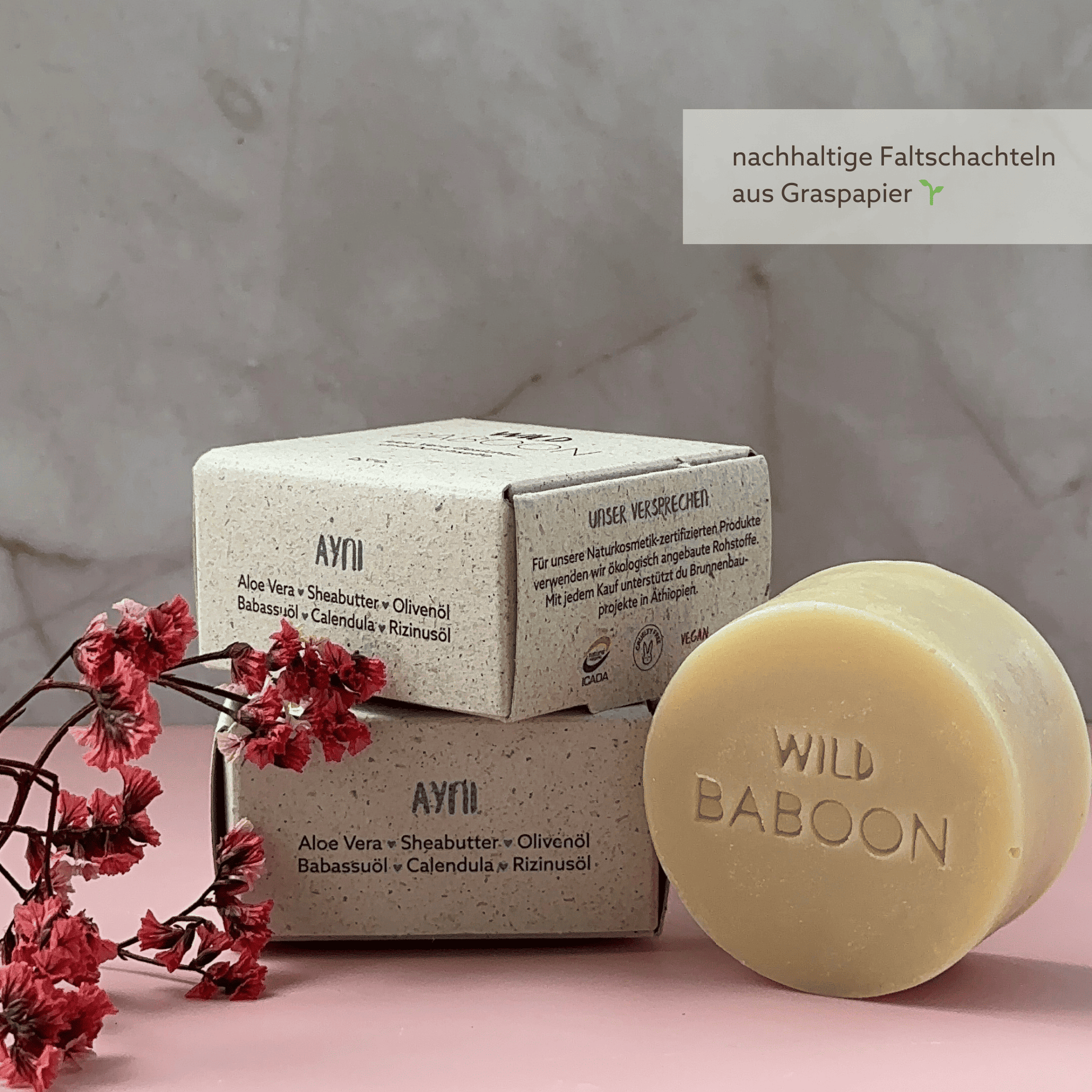 Verwende die Ayni Naturseife als plastikfreie Alternative zu Duschgelen, zum Händewaschen, zum Rasieren und zur Reinigung des Gesichts. Wir empfehlen die helle Ayni Seife für sensible Hautzonen, wie zum Beispiel das Gesicht.
