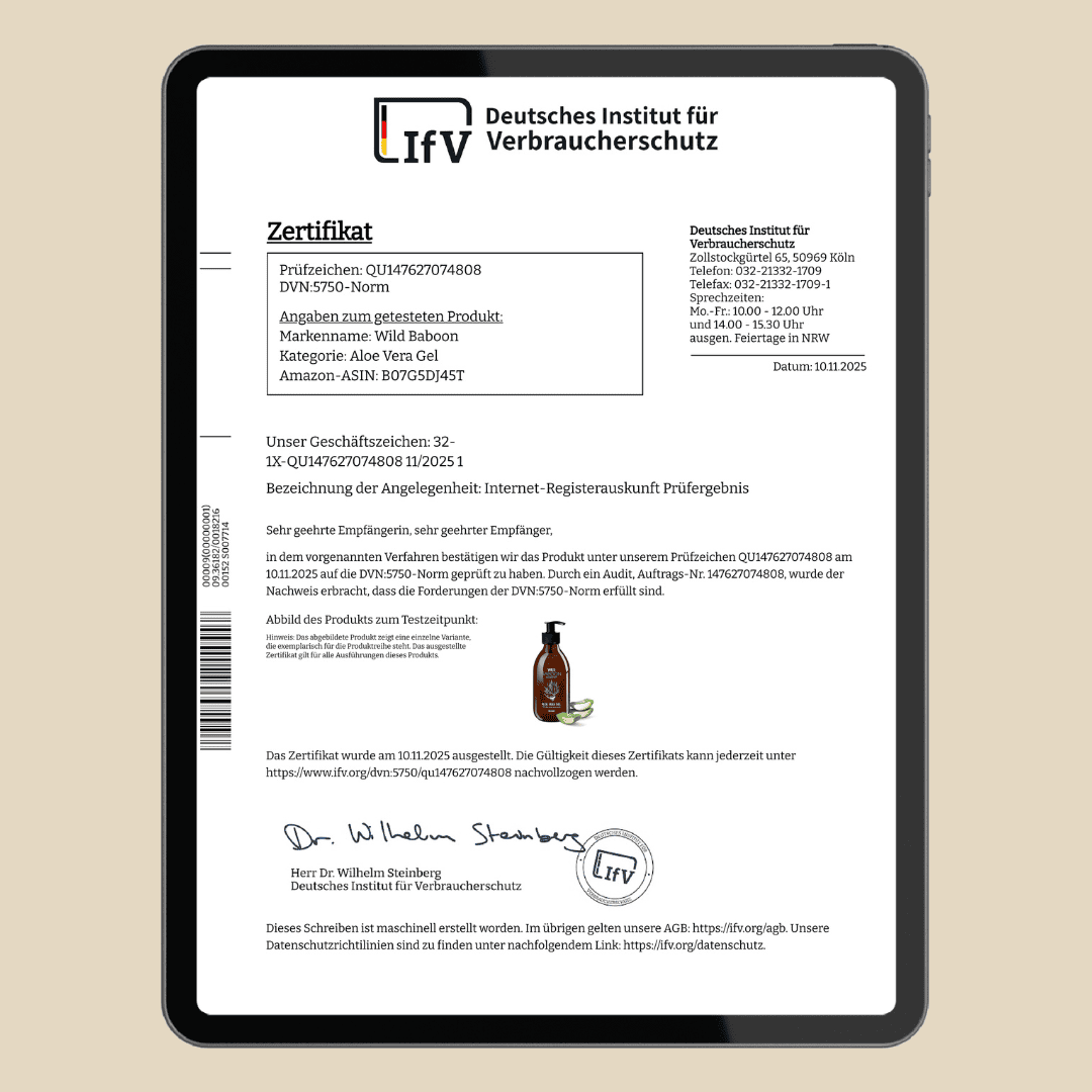 Bei Wild Baboon zu shoppen, bedeutet, sich für mehr als nur außergewöhnliche Produkte zu entscheiden. Es ist eine Wahl für eine Zukunft, in der Nachhaltigkeit, Qualität und Verantwortungsbewusstsein Hand in Hand gehen. Unsere veganen und bio-zertifizierten Aloe Vera Produkte spiegeln nicht nur unseren Respekt für die Natur wider, sondern sind auch ein Zeugnis unseres Engagements für eine gesündere, liebevollere Welt. Mit jedem Kauf unterstützen wir wichtige Projekte, die uns am Herzen liegen.